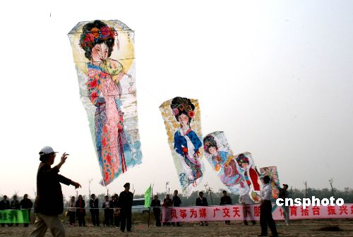 | 10月28至29日為期兩天的“洋口港杯”2006中國(guó)南通國(guó)際風(fēng)箏會(huì)暨全國(guó)風(fēng)箏精英賽在江蘇如東落下帷幕。此風(fēng)箏會(huì)上,2008米的長(zhǎng)串風(fēng)箏、200多米的龍串風(fēng)箏、碗口大小的燕子風(fēng)箏,金魚、老鷹、蝴蝶、蜻蜓,就連七仙女、四大美女、奧運(yùn)會(huì)標(biāo)和福娃們也被選手們“秀”一把。本屆賽會(huì)上,浙江省風(fēng)箏隊(duì)奪得團(tuán)體第一,南通市二隊(duì)、南京金陵隊(duì)分獲二、三名。在單項(xiàng)比賽中,浙江選手奪得多個(gè)單項(xiàng)第一。如東選手周亞新在規(guī)定風(fēng)箏的比賽中獲得第一,并獲得了賽會(huì)體育道德風(fēng)尚運(yùn)動(dòng)員獎(jiǎng)。中新社發(fā) 王必春 攝