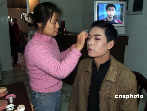 | 2006年11月24日,由安徽巢湖居巢區(qū)夏閣鎮(zhèn)農(nóng)民裴德水、昂小紅自編自導(dǎo)自演自拍的系列電視劇--現(xiàn)代廬劇《苦難中的媽媽》正在該鎮(zhèn)緊張拍攝之中。裴德水、昂小紅分別于1996年和1998年創(chuàng)辦了裴皖、小紅廬劇團(tuán),活躍在巢湖市城鄉(xiāng)舞臺上,每年演出200多場次,觀眾達(dá)10萬人次。特別是近幾年來,這兩個(gè)劇團(tuán)扎根農(nóng)村,挖掘素材,自編自導(dǎo)自演了大量反映農(nóng)村現(xiàn)實(shí)生活、積極向上的劇目,傳播先進(jìn)文化,歌頌真善美,鞭撻假惡丑,富有教育意義,為廣大群眾所喜聞樂見,傳承、振興和發(fā)揚(yáng)了地方特色傳統(tǒng)戲曲。中新社發(fā) 李遠(yuǎn)波 攝