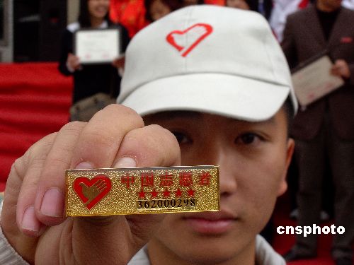 | 為紀(jì)念12·5國(guó)際志愿者日,12月3日,共青團(tuán)泉州市委、泉州志愿者協(xié)會(huì)聯(lián)合舉行“志愿服務(wù),和諧行動(dòng)”活動(dòng),對(duì)優(yōu)秀青年志愿者進(jìn)行表彰,向3名志愿服務(wù)滿1000小時(shí)的志愿者頒發(fā)“泉州青年志愿服務(wù)銀獎(jiǎng)”獎(jiǎng)?wù)潞酮?jiǎng)狀,向23位志愿服務(wù)滿500小時(shí)的志愿者頒發(fā)“泉州青年志愿服務(wù)銅獎(jiǎng)”獎(jiǎng)?wù)隆?jù)了解,2005年12月泉州有10位青年志愿者的志愿服務(wù)時(shí)間超1500小時(shí),被授予“泉州青年志愿服務(wù)金獎(jiǎng)”獎(jiǎng)?wù)隆V鬓k方還為志愿服務(wù)時(shí)間滿100小時(shí)、200小時(shí)、300小時(shí)、400小時(shí)和500小時(shí)的志愿者分別頒發(fā)“一星級(jí)志愿者”、“二星級(jí)志愿者”、“三星級(jí)志愿者”、“四星級(jí)志愿者”和“五星級(jí)志愿者”獎(jiǎng)?wù)。?dāng)天,泉州上百名志愿者在泉州市區(qū)進(jìn)行環(huán)保宣傳、義務(wù)獻(xiàn)血等系列活動(dòng)。中新社發(fā) 顏財(cái)斌 攝
