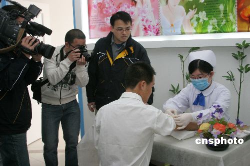 | 4月16日,北京200多名男同性戀者走進位于城北的一家醫(yī)院,接受免費的性健康和艾滋病檢查。這是北京市首次針對同性戀群體開展的義診活動。來參加體檢的同性戀者多是二人結伴而來,大多數(shù)人都在30歲左右,但也有少部分退休的老者和大學生參加。義診主要是身體檢查和心理咨詢兩大部分。身體檢查包括性病的常規(guī)檢查和艾滋病的檢查,心理咨詢也由專業(yè)的心理醫(yī)生坐診。為了保護體檢者的隱私,全部檢查都采取了不登記姓名的方式,每個體檢者都拿到了一張編號卡,同時設定密碼。主辦者表示,體檢者可以在三天后登錄“你好,志愿者”網(wǎng)站,然后輸入編號和密碼,就可以詳細地查詢到自己的體檢結果。中新社發(fā) 吳芒子 攝