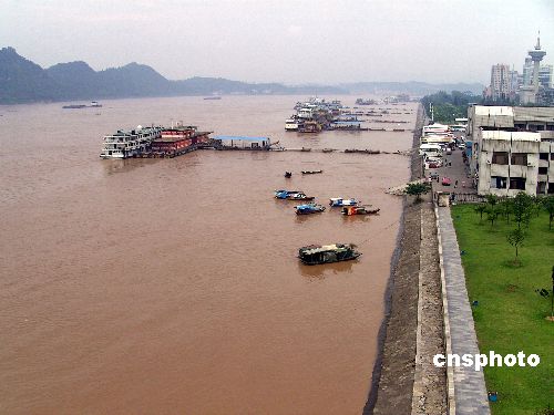 | 2007年7月30日,長江湖北宜昌城區(qū)江段水位突破53米警戒水位。當日下午,長江三峽入庫流量52500立方米每秒,葛洲壩出庫流量46776立方米每秒,葛洲壩下游湖北宜昌城區(qū)水位高達53.6米,突破53米的警戒水位。據悉,近幾日長江上游及三峽庫區(qū)持續(xù)降雨,三峽大壩為應對長江上游出現更大洪水持續(xù)泄洪,長江湖北江段水位全線上漲。中新社發(fā) 劉君鳳 攝