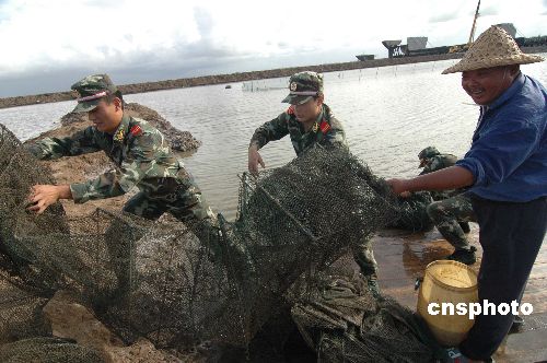 | 8月7日,邊防官兵在浙江省臺州市前所鎮(zhèn)濤江閘幫助漁民固定漁船。當日,浙江省臺州市漁政、邊防、海事等部門及時做好臺風來臨前的宣傳工作,通知出海船只回港避風,并要求轄區(qū)漁排養(yǎng)殖、危房群眾及時做好轉移準備。據(jù)氣象部門預計“帕布”將于8日上午在臺灣中南部沿海登陸,并穿過臺灣海峽,于8日傍晚到夜里在福建中南部沿海登陸。8日上午起,浙中南沿海海面將出現(xiàn)9-11級偏東風,浙北沿海海面8日下午起有7-9級偏東大風。8日下午起浙東和浙中南地區(qū)有中到大雨,其中溫州、麗水和臺州有大到暴雨、局部大暴雨。中新社發(fā) 朱孝欽 攝