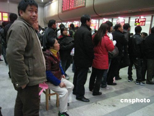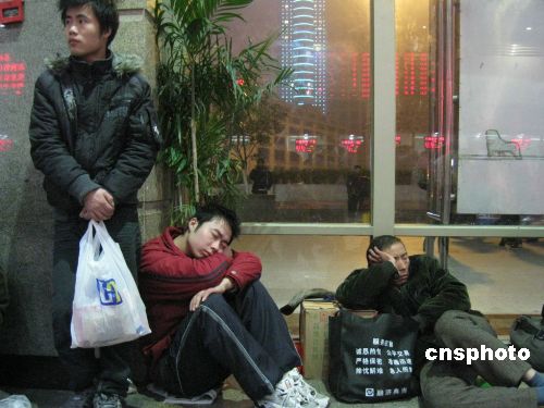 運(yùn)輸部門近日表示,2009年春運(yùn)將從一月十一日開始至二月十九日結(jié)束。據(jù)預(yù)測(cè),在40天里浙江省將有近1.946億的旅客通過(guò)各種交通方式出行。受金融危機(jī)的影響,目前已經(jīng)無(wú)工可做的打工者選擇了提前返鄉(xiāng),以致浙江發(fā)往湘、鄂、黔、贛等地的車次出現(xiàn)“一票難求”的現(xiàn)象。中新社發(fā) 孫寧亞 攝