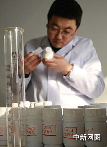 1月9日,檢測液態(tài)奶中是否含有三聚氰胺的化學法快速檢測試劑盒在蘭州上市。這項技術由蘭州大學研發(fā),并于2008年11月7日通過了甘肅省科技廳組織的成果鑒定。生產商甘肅欣慶環(huán)?萍加邢挢熑喂窘榻B,這種試劑盒不僅適用于乳品生產企業(yè)、基層奶站、基層質檢站等部門,而且可以進入家庭使用。據(jù)悉,日前,國內乳品公司已和生產商簽定了多批訂單,部分試劑盒即日發(fā)往省外。