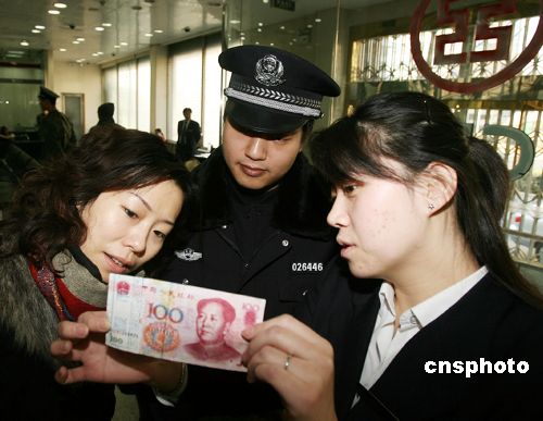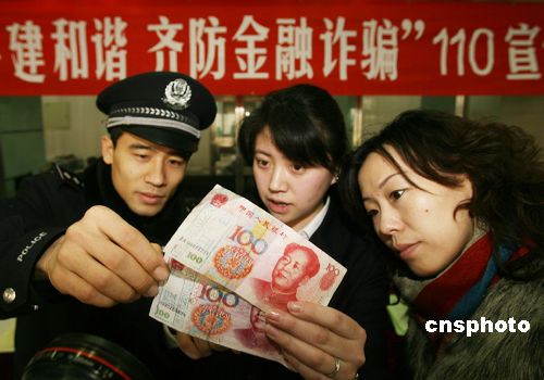 1月10日,北京110迎來(lái)第十三個(gè)宣傳日。北京崇文區(qū)警方向市民講解識(shí)別假幣的知識(shí)。中新社發(fā) 胡建強(qiáng) 攝