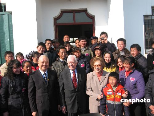 一月十四日,美國(guó)前總統(tǒng)吉米·卡特夫婦一行七人抵達(dá)武漢,并赴前中國(guó)國(guó)家主席李先念的故鄉(xiāng)湖北紅安縣參觀訪問(wèn)。中國(guó)對(duì)外友協(xié)副會(huì)長(zhǎng)李小林、湖北省副省長(zhǎng)田承忠等陪同參訪。中新社發(fā) 艾啟平 攝