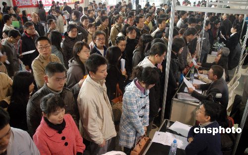 1月17日,福建省2009年春季大中專畢業(yè)生供需見面、雙向選擇大會(huì)在福州金山展覽城舉行。本次大會(huì)吸引了550多家用人單位前來招聘,為求職者提供近兩萬多個(gè)就業(yè)崗位,幾萬名大中專畢業(yè)生前來應(yīng)聘。大會(huì)為公益性活動(dòng),對(duì)參會(huì)單位和求職人員均實(shí)行免費(fèi),參會(huì)的對(duì)象包括各設(shè)區(qū)市人事局,省直和中央在閩單位,各類企事業(yè)單位,各類人才中介機(jī)構(gòu),2009年大中專畢業(yè)生、畢業(yè)研究生及往屆待就業(yè)畢業(yè)生。中新社發(fā) 張 斌 攝