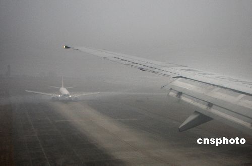 1月18日12時(shí)30分,一架滿(mǎn)載回家過(guò)年乘客的中國(guó)國(guó)際航空公司從北京飛往成都的波音738客機(jī),在成都機(jī)場(chǎng)上空盤(pán)旋五十分鐘后方降落在依舊被濃霧籠罩的成都機(jī)場(chǎng)跑道。當(dāng)天,四川省的川西平原遭遇今冬極為罕見(jiàn)的超級(jí)濃霧天氣,成都機(jī)場(chǎng)的航班大面積延誤,午后方部分開(kāi)放。中新社發(fā) 任晨鳴 攝