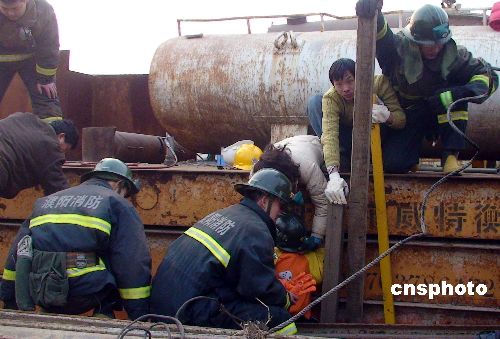 1月19日上午,河南濮陽市一家食品加工點——涼皮作坊的常壓鍋爐發(fā)生爆炸,爐體炸飛20多米高,最后落在30米遠處的一個大雜院屋頂上,將房頂砸塌。濮陽市消防支隊華龍區(qū)大隊官兵接報趕到現(xiàn)場后,安全疏散群眾。炸飛鍋爐散落煤炭引起的火災(zāi)在消防官兵的迅速處置下被撲滅,所幸事故未造成人員傷亡。中新社發(fā) 劉敬寬 攝