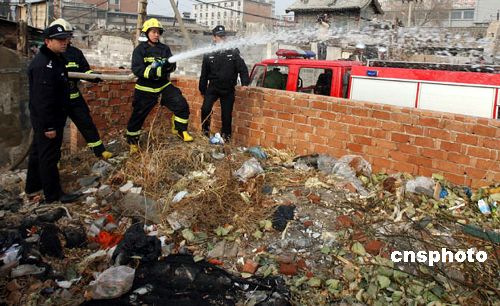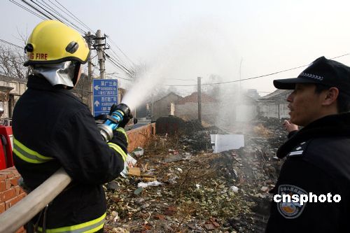 連日,北京遇大風(fēng)降溫天氣。為確保春節(jié)期間燃放煙花爆竹等消防安全,近日,北京崇文警方會(huì)同消防部門(mén)清理市民居住區(qū)內(nèi)各樓道及房前屋后的可燃物,拆除在消防通道上搭建的違章建筑,并派出消防車專門(mén)對(duì)前門(mén)地區(qū)重點(diǎn)部位、火災(zāi)隱患較為嚴(yán)重的院落實(shí)行人工降雨,確保春節(jié)期間消防安全。中新社發(fā) 胡建強(qiáng) 攝