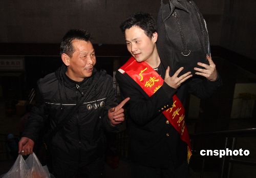 1月29日,湖南省婁底車(chē)務(wù)段的青年志愿者在婁底火車(chē)站為攜帶許多行李等老弱病殘等旅客提供各種幫助。當(dāng)日,湖南省婁底火車(chē)站迎來(lái)節(jié)后返程客流小高峰,婁底車(chē)務(wù)段團(tuán)委組織近千名團(tuán)員青年志愿者開(kāi)展“和諧春運(yùn)”活動(dòng),在管區(qū)內(nèi)的車(chē)站設(shè)立了被旅客稱(chēng)為“愛(ài)心島”的青年志愿者服務(wù)站,為旅客提供溫馨服務(wù)。中新社發(fā) 郭國(guó)權(quán) 攝