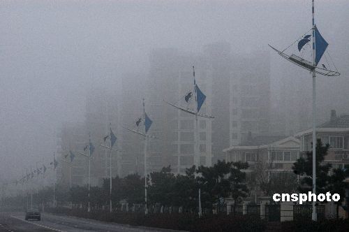 2月2日,江蘇連云港大部分地區(qū)遭遇持續(xù)大霧天氣,城區(qū)大霧彌漫,能見(jiàn)度較低,最低能見(jiàn)度不足50米,境內(nèi)多條高速公路封閉,給當(dāng)?shù)厥忻癯鲂屑敖煌ㄟ\(yùn)輸帶來(lái)影響。當(dāng)?shù)貧庀蟛块T(mén)發(fā)布了大霧黃色預(yù)警,交通安全部門(mén)提醒旅客要注意出行安全。中新社發(fā) 王春 攝