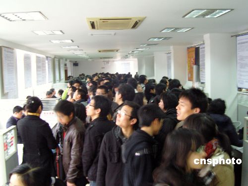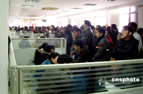 2月3日,杭州新年首場招聘會開場,小小的招聘會廳內(nèi)擠滿渴望就業(yè)的人們。目前就業(yè)形勢嚴(yán)峻,供仍遠(yuǎn)遠(yuǎn)大于求。中新社發(fā) 王磊 攝