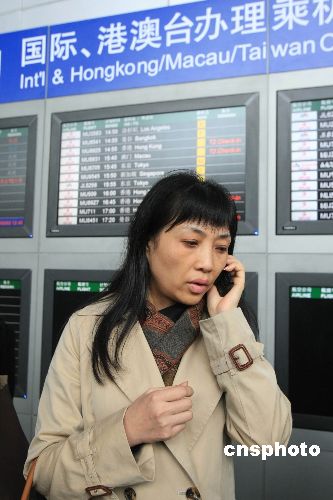 2月3日下午,在美國(guó)遭遇車(chē)禍?zhǔn)鹿实氖着虾S慰图覍儆H友團(tuán),從浦東國(guó)際機(jī)場(chǎng)啟程飛往美國(guó)處理車(chē)禍遇難者善后事宜,上海東湖國(guó)旅相關(guān)負(fù)責(zé)人陪同前往。圖為東湖國(guó)旅人員邊女士在浦東國(guó)際機(jī)場(chǎng)。中新社發(fā) 湯彥俊 攝