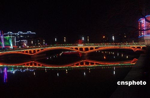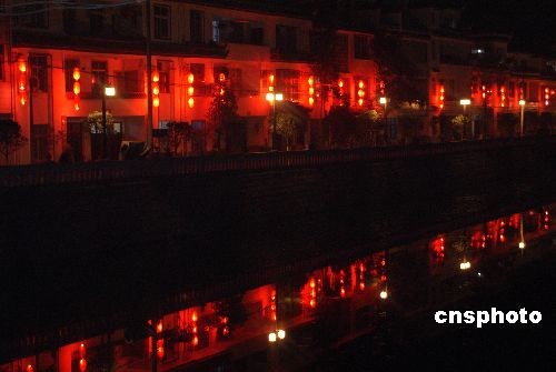 元宵節(jié)臨近,2月5日,陜西寧強(qiáng)街頭點(diǎn)亮元宵燈飾。中新社發(fā) 黎徳華 攝