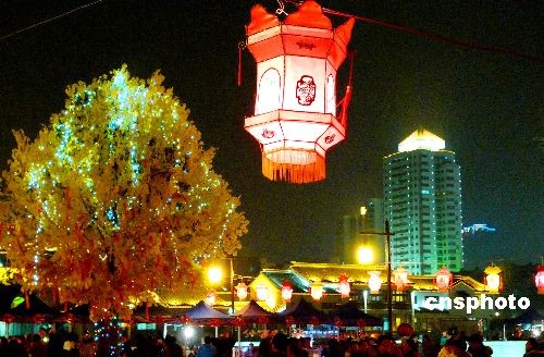 2月6日,“2009蘇州元宵燈會(huì)”在蘇州古運(yùn)河畔的古胥門廣場閃亮登場,現(xiàn)場舉行的賞花燈、猜燈謎等民俗表演活動(dòng),吸引了許多市民和中外游客。中新社發(fā) 王建中 攝
