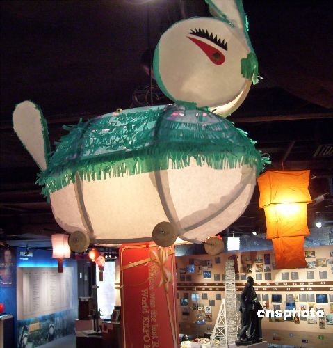 2月10日,上海世博會展示中心內,澳門館“玉兔宮燈”安放在“中國館”旁,世博會期間,“玉兔宮燈”和“中國館”將共迎八方來賓。中新社發(fā) 井韋 攝
