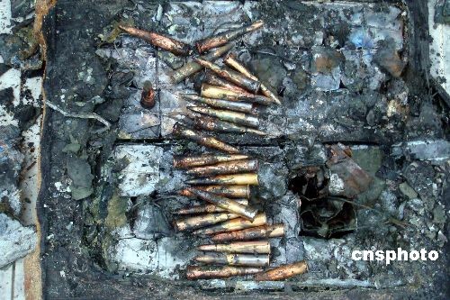2月11日,浙江省蒼南縣炎亭邊防派出所民警下鄉(xiāng)走訪時,遇見漁民陳某正在家門口用榔頭敲打一個表面裹滿了泥沙的木箱子,打開后發(fā)現(xiàn)有1000余發(fā)軍用子彈。據(jù)邊防民警介紹,這箱子彈保存較為完好,大約戰(zhàn)爭年代遺留下來,是漁民陳某在2月10日出海作業(yè)時從海底打撈上來的,誤當作稀有“古董”運回家中收藏。目前,警方已依法對這箱子彈進行了收繳。中新社發(fā) 吳水斌 攝