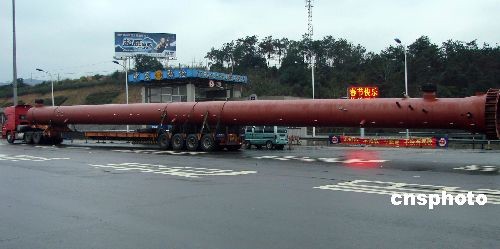 2月16日,在浙江湖州高速父子嶺省際卡點處,一輛大型半掛貨車載著長約50米,酷似大炮的大型鋼管欲駛出收費通道。發(fā)現此情況后,高速交警立即示意駕駛員停車接受檢查,不料駕駛員非但沒有將車停下,反而提速欲沖卡逃跑,索性被交警及時攔截。中新社發(fā) 袁爽 攝