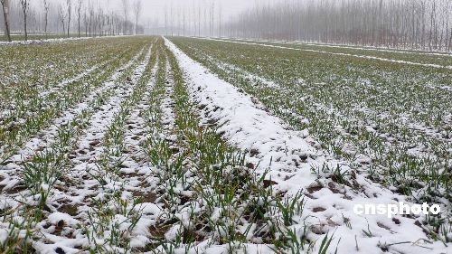 2月18日至2月19日凌晨,旱情嚴(yán)重的山東聊城降下雨雪,溫度降到零下3攝氏度,雨雪量雖然不大,但緩對(duì)解旱情、對(duì)凈化空氣,小麥生長(zhǎng)有一定的益處。 中新社發(fā) 張憲舉 攝