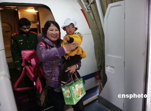 2月22日,頓珠倉(cāng)決帶著一歲多的女兒乘飛機(jī)返回拉薩過(guò)藏歷新年。中新社發(fā) 劉震 攝