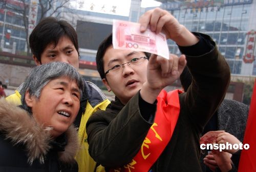 2月24日上午,反假貨幣“壁壘行動”在江蘇鎮(zhèn)江大市口廣場啟動。據(jù)悉,由中國人民銀行鎮(zhèn)江市中心支行組織全市各金融機構以及公安部門將進行為期三個月的反假貨幣宣傳活動,活動還將成立反假宣傳小分隊深入到社區(qū)、商場、農(nóng)貿市場、車站、農(nóng)村等地向群眾宣傳反假幣知識和相關法律常識。中新社發(fā) 封波 攝