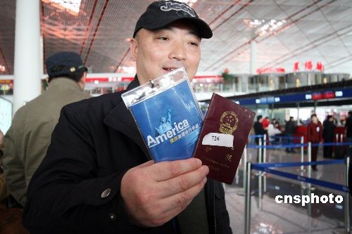 中國首個赴美購房團(tuán)于2月24日在首都機(jī)場乘坐13點(diǎn)40分的國際航班啟程赴美。登機(jī)前,赴美購房團(tuán)舉行了簡單的出發(fā)儀式。赴美購房團(tuán)登機(jī)前,搜房網(wǎng)對團(tuán)員進(jìn)行了問卷調(diào)查,結(jié)果顯示,在計劃行程中的五個美國城市中,紐約以36.84%的高支持率成為最受關(guān)注的城市,接下來依次為洛杉磯、舊金山、波士頓和拉斯維加斯。中新社發(fā) 王昊 攝