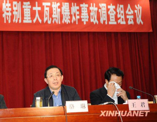 2月24日,山西省委副書(shū)記、省長(zhǎng)王君在國(guó)務(wù)院山西焦煤集團(tuán)屯蘭礦“2·22”特別重大瓦斯爆炸事故調(diào)查組第一次全體會(huì)議上,流淚向死難礦工及礦工家屬致歉。王君發(fā)言中情緒激動(dòng),數(shù)度哽咽。