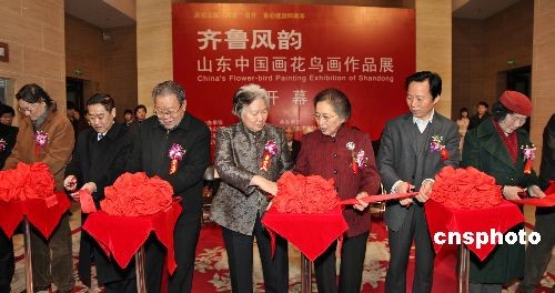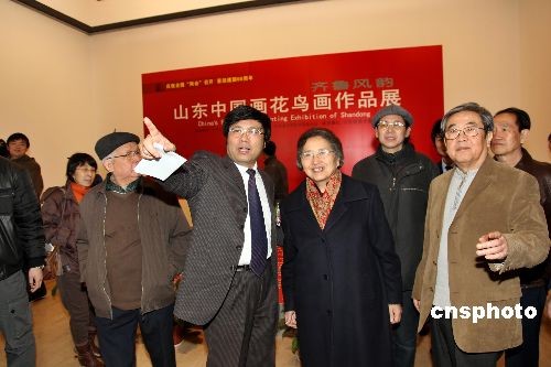 2009年2月25日上午,為慶祝全國“兩會”召開,迎接祖國60周年華誕,由中共山東省委宣傳部、山東省文化廳、山東省文聯(lián)主辦,山東省美協(xié)承辦的“齊魯風韻--山東中國畫花鳥畫作品展”在中國美術館開幕。開幕式由山東省美協(xié)常務副主席兼秘書長孔維克主持,全國人大原副委員長何魯麗、全國政協(xié)原副主席郝建秀、中共中央組織部原部長張全景、文化部副部長王文章、山東省人大副主任溫孚江等領導出席了開幕式。中新社發(fā) 王保勝 攝
