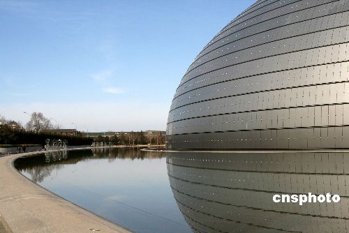 2009年2月25日,國(guó)家大劇院外表被清洗的煥然一新,喜迎“兩會(huì)”的召開(kāi)。中新社發(fā) 任丘 攝