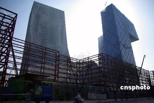 2月27日,工人們正在給央視新址火災(zāi)現(xiàn)場搭建護(hù)欄。據(jù)專家勘察,央視新址北配樓主體結(jié)構(gòu)未受嚴(yán)重影響,專家建議采取剝除“外衣”局部修復(fù)的方式維修該樓,估計年內(nèi)能修復(fù)完成。 中新社發(fā) 九州 攝