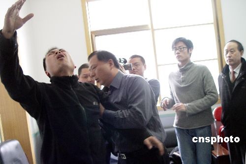 2月28日,年齡超過五十歲的企業(yè)人士蔡玉建,在河南鄭州演示“少林點穴功”,醫(yī)學專家現(xiàn)場觀看后稱,這不是什么神秘的東西,屬于人體打擊正常反應。大約一周前,經(jīng)營生物保健產(chǎn)品的蔡玉建被當?shù)貓蠹埰爻錾瞄L點穴,引起媒體和民眾的廣泛關(guān)注。28日,蔡玉建和其弟子釋延力的表演在鄭州市一家醫(yī)院上演,觀者有媒體、醫(yī)護人員和專家等。中新社發(fā) 李志全 攝