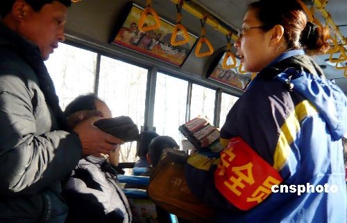 3月9日,為確保正在北京召開(kāi)的人大、政協(xié)“兩會(huì)”治安安全,北京公交車上的司售人員加強(qiáng)了安全防范。中新社發(fā) 錢興強(qiáng) 攝