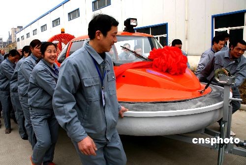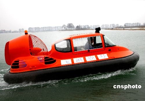 3月10日,國內首批國產氣墊船在東海縣成功下線后,4艘氣墊船已到達黃河內蒙古段的凌訊排除第一線的冰凌區(qū),執(zhí)行“破凌”任務。 中新社發(fā) 魏愛華 攝