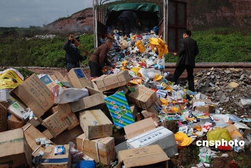 3月13日,重慶市璧山縣工商、質(zhì)監(jiān)、煙草等相關(guān)部門將收繳的假冒偽劣商品集中銷毀。據(jù)悉,此次被銷毀的偽劣商品有化妝品、日用品、假煙、假酒等539個(gè)品種。中新社發(fā) 謝捷 攝