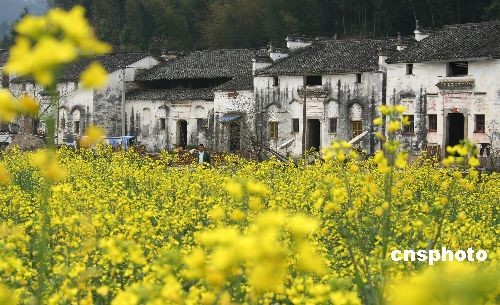 3月18日,江西婺源縣油菜花開。陽春三月,婺源縣10萬畝油菜花田陸續(xù)開放,成片的金黃色油菜花與粉墻黛瓦的徽民居組成一幅幅美麗的春日畫卷,吸引游客踏春賞花。中新社發(fā) 胡敦煌 攝