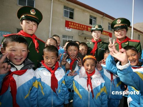 3月21日,武警西藏總隊醫(yī)院官兵與西藏拉薩奪底鄉(xiāng)中心小學開展了警民共建捐資助學活動,該醫(yī)院官兵共向奪底鄉(xiāng)中心小學捐資2萬元現金,贈送價值2萬余元的學習電腦。中新社發(fā) 錢檬 攝