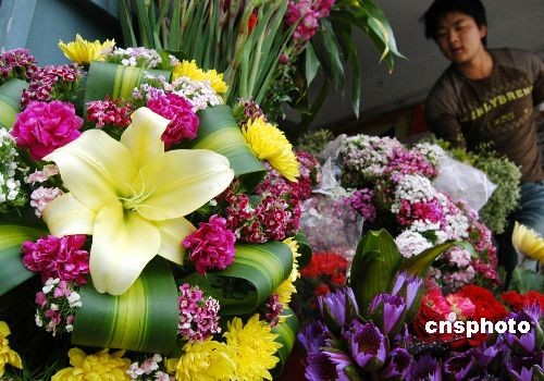 3月26日,在福建泉州風(fēng)俗掃墓的第一天,市區(qū)花店收到了許多簡(jiǎn)易花圈的訂單。在金融危機(jī)的大形勢(shì)下,市民放棄以往奢華的花籃花圈,大多挑選簡(jiǎn)易花束、花圈祭祖。中新社發(fā) 傅丹丹 攝