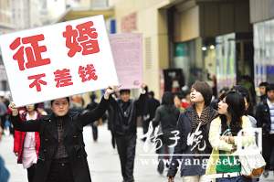 “征婚,不差錢”。30日下午,在南京新街口正洪街廣場,一名青年女子高舉寫著這五個大字的廣告牌,從逛街的人流中走過,雷人的廣告詞引來眾多市民圍觀。緊跟在后面一名中年男子舉著另一塊廣告海報,密密麻麻的文字揭示了其中的玄機。原來,中年男子是南京一家婚介公司的負責人,此舉是為北方某地一千萬富翁征婚。記者通過QQ聯系采訪了這名富翁,得知這位北方漢子竟對南京女孩情有獨鐘,執(zhí)意要在南京找到另一半。