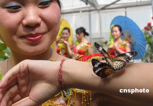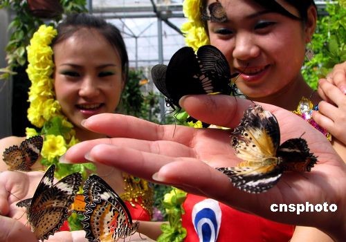 4月1日,位于北京植物園內的熱帶蝴蝶生態(tài)園正式開園,數(shù)千只色彩斑斕的蝴蝶和數(shù)十種千奇百怪的蟲子將正式與游客見面。熱帶生態(tài)蝴蝶園是中國內地首次從馬來西亞檳城蝴蝶園進口的集昆蟲蝴蝶標本、活體昆蟲展示和活蝴蝶放飛為一體的具有知識性、趣味性、科普性、教育性的昆蟲蝴蝶科普生態(tài)園,也是國內第一家進口的活體蝴蝶和昆蟲品種最全、規(guī)模最大、蝴蝶昆蟲標本最多科普展。熱帶蝴蝶生態(tài)園共分為三個展區(qū):蝴蝶館、昆蟲館、科普標本館。圖為蝴蝶生態(tài)園吸引游客。中新社發(fā) 錢興強 攝