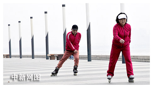 中新網蘇州4月16日電(周昕) 清晨的蘇州工業(yè)園區(qū)金雞湖畔,一群老人特別的顯眼,和一般老人打拳、舞扇、散步的鍛煉方式不同,他們雙手背在身后,腳下踩著“風火輪”,八個人排成一列,向前滑行,一個滑步便輕松地把其他人遠遠地甩在了身后,顯得異常瀟灑并且充滿活力。