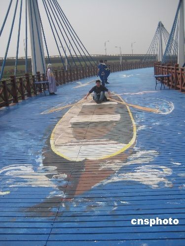 4月18日,在“2009杭州生活品質(zhì)市民體驗(yàn)日”活動(dòng)中,國(guó)外日漸風(fēng)靡的立體畫(huà)首次在浙江杭州亮相。立體畫(huà)是利用人眼的立體視覺(jué)差現(xiàn)象制作的繪畫(huà)作品,畫(huà)作集趣味性、藝術(shù)性和互動(dòng)型于一體,真正實(shí)現(xiàn)“人在畫(huà)中游”。體驗(yàn)項(xiàng)目一推出,得到了杭州市民的歡迎,爭(zhēng)先恐后感受“畫(huà)中游”。中新社發(fā) 江耘 攝