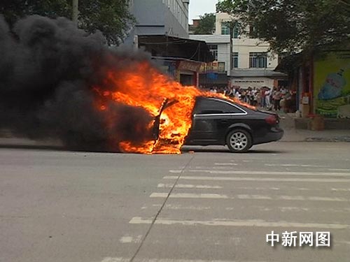 25日上午10時(shí)許,防城港市支隊(duì)“119”指揮中心接到報(bào)警電話后,迅速調(diào)動(dòng)港口中隊(duì)一輛消防車(chē)、8名官兵前往撲救。趕到事故現(xiàn)場(chǎng)時(shí),小汽車(chē)已處于猛烈燃燒階段,車(chē)身已變成了一團(tuán)巨大的火球,黑色的濃煙和刺鼻的焦味籠罩著整個(gè)路段,造成港口至企沙的公路一時(shí)堵塞,過(guò)往的司機(jī)及乘客都站在圍觀觀望。