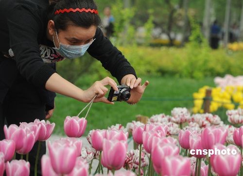 4月29日,一位北京姑娘戴著口罩在公園里游玩拍照。中國(guó)“五一”小長(zhǎng)假將臨,將有億萬(wàn)民眾旅游度假,官方提醒密切關(guān)注國(guó)外豬流感疫情,主動(dòng)預(yù)防,盡量避開人群密集場(chǎng)所。世界衛(wèi)生組織當(dāng)日晚在日內(nèi)瓦宣布,將全球流感大流行警告級(jí)別從目前的4級(jí)提高到5級(jí)。中新社發(fā) 賈國(guó)榮 攝
