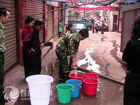 據(jù)介紹,這一幕出現(xiàn)在向家壩水電站屏山縣庫區(qū)錦屏鎮(zhèn)移民居民點。4月下旬以來,因移民過渡安置區(qū)工地施工,大型運輸車輛時常壓壞該縣錦屏鎮(zhèn)自來水供水管道,導(dǎo)致移民群眾吃水困難。4月28日,錦屏鎮(zhèn)東城社區(qū)因水管爆裂再次停水,移民正常生產(chǎn)生活受到了極大影響。該縣公安消防大隊得知這個消息后,連夜組織兩輛消防水車開到社區(qū)為群眾義務(wù)送水!八畞砹耍∷畞砹恕蓖砩8時許,兩輛送水的消防車在群眾歡呼聲中先后來到各居民送水點。