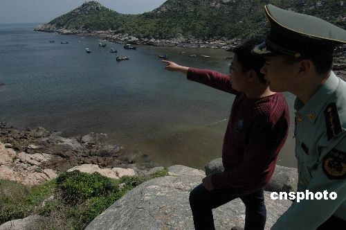 5月6日,南麂邊防派出所官兵在海邊觀察赤潮污染情況。 中國首批五個(gè)國家級海洋類型自然保護(hù)區(qū)之一的浙江省平陽縣南麂列島海域從5月2日起發(fā)生赤潮現(xiàn)象,目前開始有所消退。發(fā)現(xiàn)赤潮后,南麂邊防派出所官兵迅速出動,向當(dāng)?shù)貪O民群眾宣傳有關(guān)防范知識,并提醒水產(chǎn)養(yǎng)殖戶做好各項(xiàng)預(yù)防措施。中新社發(fā) 吳水斌 攝