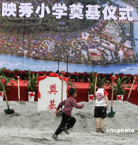 5月11日,四川省汶川縣映秀鎮(zhèn)災(zāi)后恢復(fù)重建項(xiàng)目開工暨映秀小學(xué)新校舍奠基儀式舉行。映秀小學(xué)在地震中校舍徹底倒塌,孩子們在板房上課至今。新校舍由深圳證監(jiān)局捐建,用地10446平方米,其中綠地面積大于35%,總投資2951.6萬元,擬建6層,可容納12個班,學(xué)校運(yùn)動場作為臨時避災(zāi)場地。預(yù)計工期5個月。 同期開工的還有包括映秀幼兒園、中灘堡大道、漁子溪大橋和映秀鎮(zhèn)安居房等映秀鎮(zhèn)災(zāi)后恢復(fù)重建項(xiàng)目。中新社發(fā) 張曉理 攝