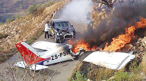 6月7日下午,南非約翰內(nèi)斯堡當(dāng)?shù)?0歲女子莫尼卡·布拉甘卡駕駛一輛福特小貨車在克魯吉斯多普機(jī)場附近的一條公路上行駛,汽車上還坐著另外一名叫做安娜·瓦林娜的女子和一名名叫托尼的男子。當(dāng)莫尼卡駕車行駛時(shí),她突然看到天空中有一架輕型飛機(jī),正朝她的小貨車筆直地俯沖下來!由于汽車行駛的公路非常狹窄,莫尼卡根本來不及避讓這架從天而降的輕型飛機(jī)!