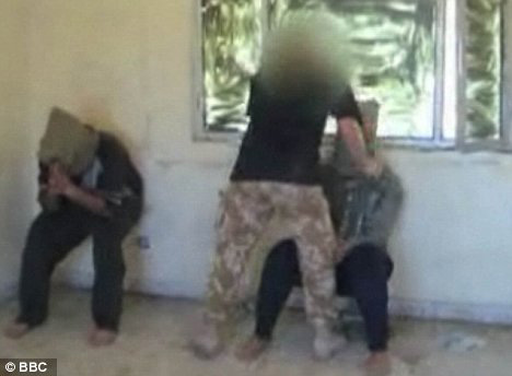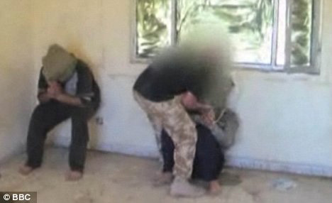 這段長約一分鐘的錄像顯示,6名伊拉克男子被帶著頭套,在大聲呼號。他們被迫將手伸展著,手腕被手銬銬起來,腿保持彎曲,不許蹲、不許坐,姿態(tài)看起來非常痛苦。一名英國士兵正在尖叫著大罵他們?yōu)椤霸撍赖脑澈铩薄?