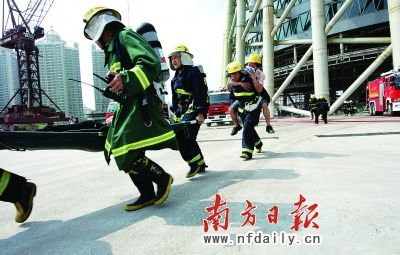 昨日(12日)上午9時(shí)30分,消防警報(bào)響徹珠江兩岸,30臺消防車呼嘯著駛向廣州新地標(biāo)——高達(dá)610米的廣州新電視塔。世界最高電視塔“失火”,上千工人緊急疏散,數(shù)十人被困火場。今年5月12日是全國首個(gè)“防災(zāi)減災(zāi)日”,為檢驗(yàn)超高層建筑火災(zāi)應(yīng)急處置和省城消防滅火救援能力,省減災(zāi)委員會辦公室、省公安廳于當(dāng)日上午在廣州新電視塔舉行超高層建筑滅火救援演習(xí)。